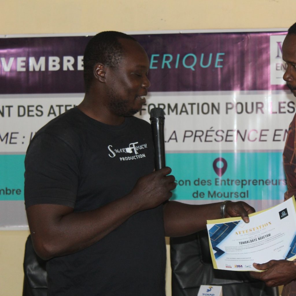 Lancée depuis le 02 Novembre 2024, la cérémonie de clôture de la formation des ONG et OSC a lieu ce 07 décembre au sein de la maison des entrepreneurs de Moursal. S’il faut le rappeler, le corsosium composé de l’agence TOBE MALKO SMART TOUCH et IBC TCHAD a lancé une formation à l’endroit des ONG et OSC. Cette formation s’est déroulé sur les quatre semaines du mois de Novembre commémorant ainsi Novembre numérique. Cette occasion a permis aux participants de comprendre l’importance d’être en ligne, de renforcer leur impact et leur visibilité dans un monde de plus en plus digitalisé. Les participants ont appris à concevoir et gérer une présence en ligne efficace à travers des outils tels que les sites web, les réseaux sociaux.  Le coordonnateur du programme Web Pour Tous MALKOMBE MBAIOUDAKOUM lance un vibrant appel à l’endroit des partenaires, pour soutenir ces organisations dans leur transition numérique. L’apport qu’il soit technique ou financier, permettra de pérenniser ces efforts et d’étendre leur impact.